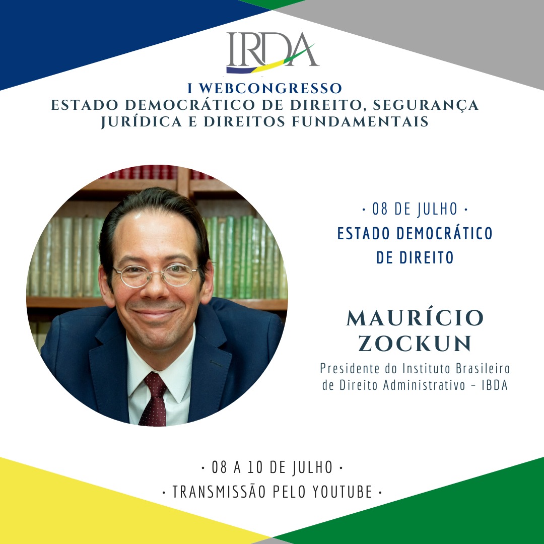 Com inscrições abertas, o Instituto Rondoniense de Direito Administrativo – IRDA, inicia a divulgação do cronograma de palestras do I Webcongresso de Direito: Estado Democrático de Direito, Segurança Jurídica e Direitos Fundamentais